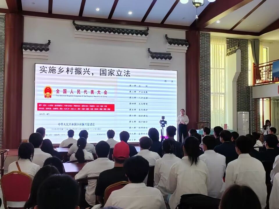 随后,党的二十大代表、全国十四届政协委员、大湾村党支部书记余静同志给师生们上一堂特殊的思政课。余书记从自己的学习和工作经历谈起,说到作为一名扶贫干部带领全村干部群众拧成一股绳,在条件极其刻苦的情况下,创造条件、克服困难,实现了大湾村从脱贫攻坚工作的胜利。她分享了扶贫路上的所见所得所感,在乡村振兴之路上,要用心用情用力,不犹豫彷徨,勇于担当起该担当的责任,敢于战胜前进过程中的一个个困难,把各项工作做深、做细、做实。最后,她给全体学生提出了三点希望:一是要有信念。她希望各位同学在自己的岗位上要做到无人能及,给自己提出更高的要求和目标,日常的学习和生活要多思考、养成好的习惯;二是要有行动。目标制定了之后,不能只是停留在口头上,而是必须要践行、要实干,成天好高骛远是不会有大成就的,脚踏实地、日积月累才会有成效;三是要有成绩。做一件事情就要做好,要有成绩才行,新时代青年更应肩负历史使命,珍惜韶华、奋发有为,将个人理想和国家发展相结合。余书记既像一位师姐跟自己的师弟师妹传授着人生经验,又似一位母亲谆谆善诱的教导自己的孩子,给师生们留下了极深的感染力。