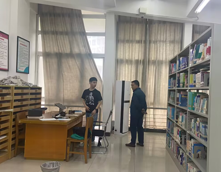 在检查过程中,王主任要求,一要做好防潮工作,关好多媒体教室、图书馆各书库、办公室等场所门窗,防止雨水浸湿;密切关注五楼下水管排水情况,防止堵塞漏水。二要做好图书馆大楼暑期消防安全管理工作。检查组还查看了重点岗位的安全记录台账,了解书库工作人员和中心机房管理员对特种灭火器使用方法的掌握情况,要求电教设备管理员要重视电教设备的检查与维护,确保设备用电安全;要求中心机房管理员要严格执行机房管理制度,严格执行出入人员登记制度;要求服务台工作人员要严格监控入馆人员,避免将易燃易爆物品带入馆内;要求图书馆办公室要做好消防器材的定期检查工作,做到维护及时。