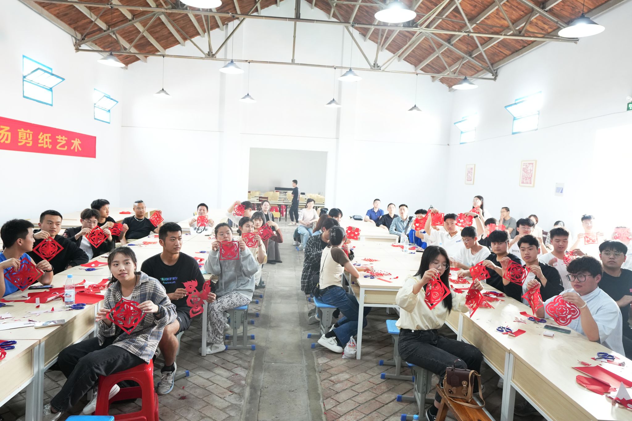 本网讯(马克思主义学院汤晓莉)为更好的将学校小课堂与社会大课堂紧密联动,创新思政课“打开方式”,将剪纸非遗与学生的思想政治教育充分结合。4月19日下午,马克思主义学院师生走进六安市金安区翁墩乡杨公村,开启悟经典“翁墩文化”品传统技艺魅力——“行走的思政课”实践教学之旅。马克思主义学院思政课授课教师及全校近50名学生代表参加了此次活动。