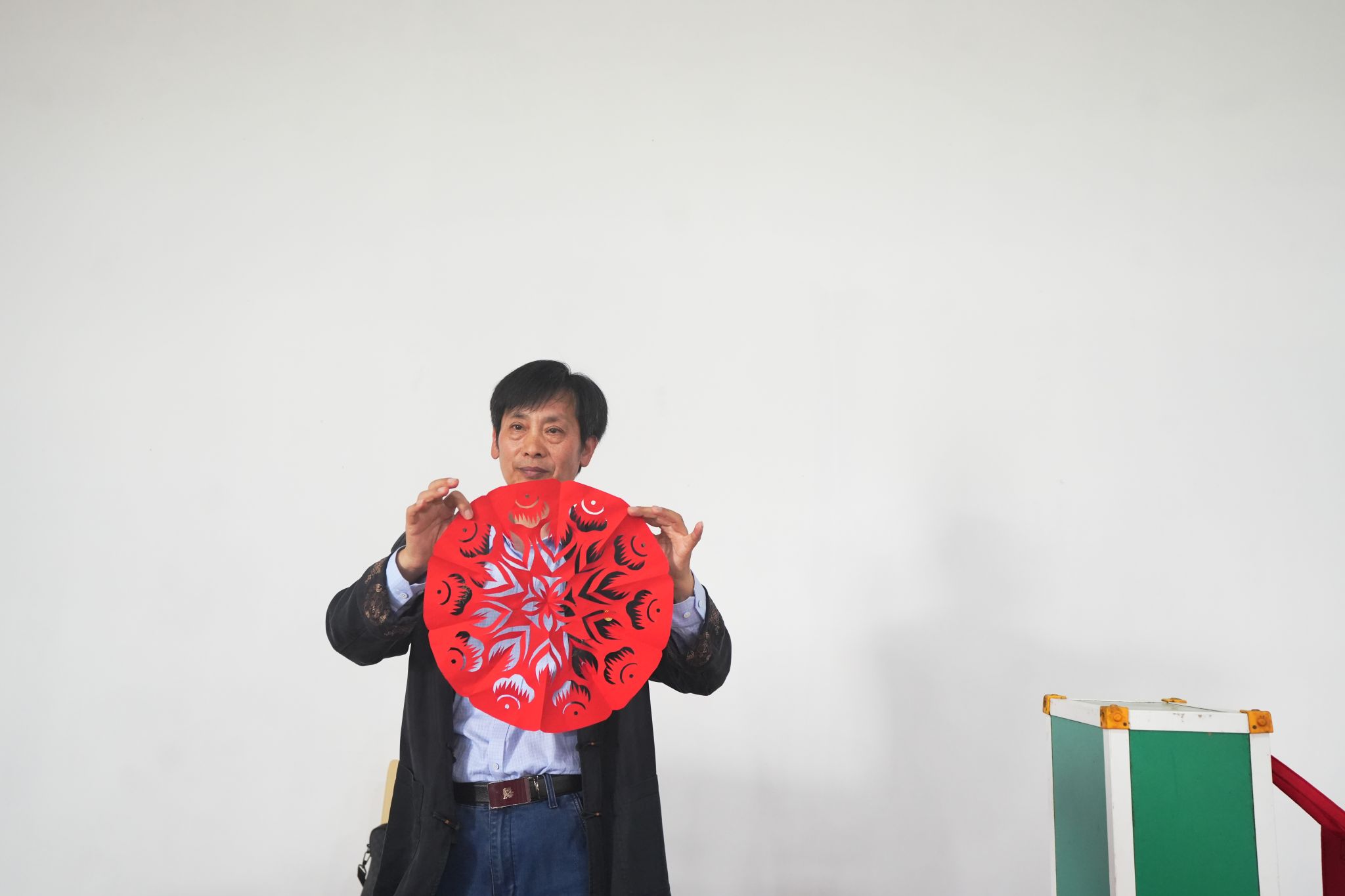 安徽省非物质文化遗产(翁墩剪纸)传承人、中国民间文艺家协会会员、安徽省工艺美术学会会员徐圣年老师作为主讲,从中华传统文化技艺入手,介绍了剪纸的历史文化根源,热切勉励师生们牢固树立文化自信,大力弘扬和传承中华民族优秀传统文化,担当起民族复兴的使命。徐圣年从剪纸的构造、技法特点、构思等方面为师生们进行了详细介绍,由浅入深地传授了多种多样的剪纸技法,现场示范了剪纸的基本技艺要点,师生们在徐老师的手把手指导下,完成了一幅幅精美的剪纸作品。
