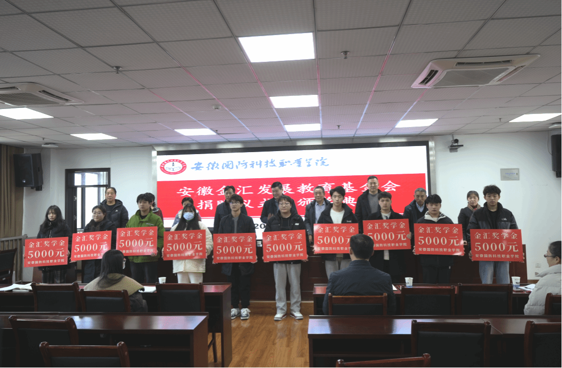 1月8日下午,安徽金汇发展教育基金会捐赠仪式暨金汇奖学金颁奖典礼在beat365秉心楼12楼会议室举行。校党委书记余嗣元、金汇基金会理事长王进、中国人民银行六安分行纪委书记詹自友、金汇基金会副理事长梁皖萍以及基金会嘉宾王刚、黄世芳、许敏、钟波等,校学工部、各二级学院领导,校资助中心工作人员以及获奖学生代表等参加活动。仪式由校党委委员、副校长袁旗主持。