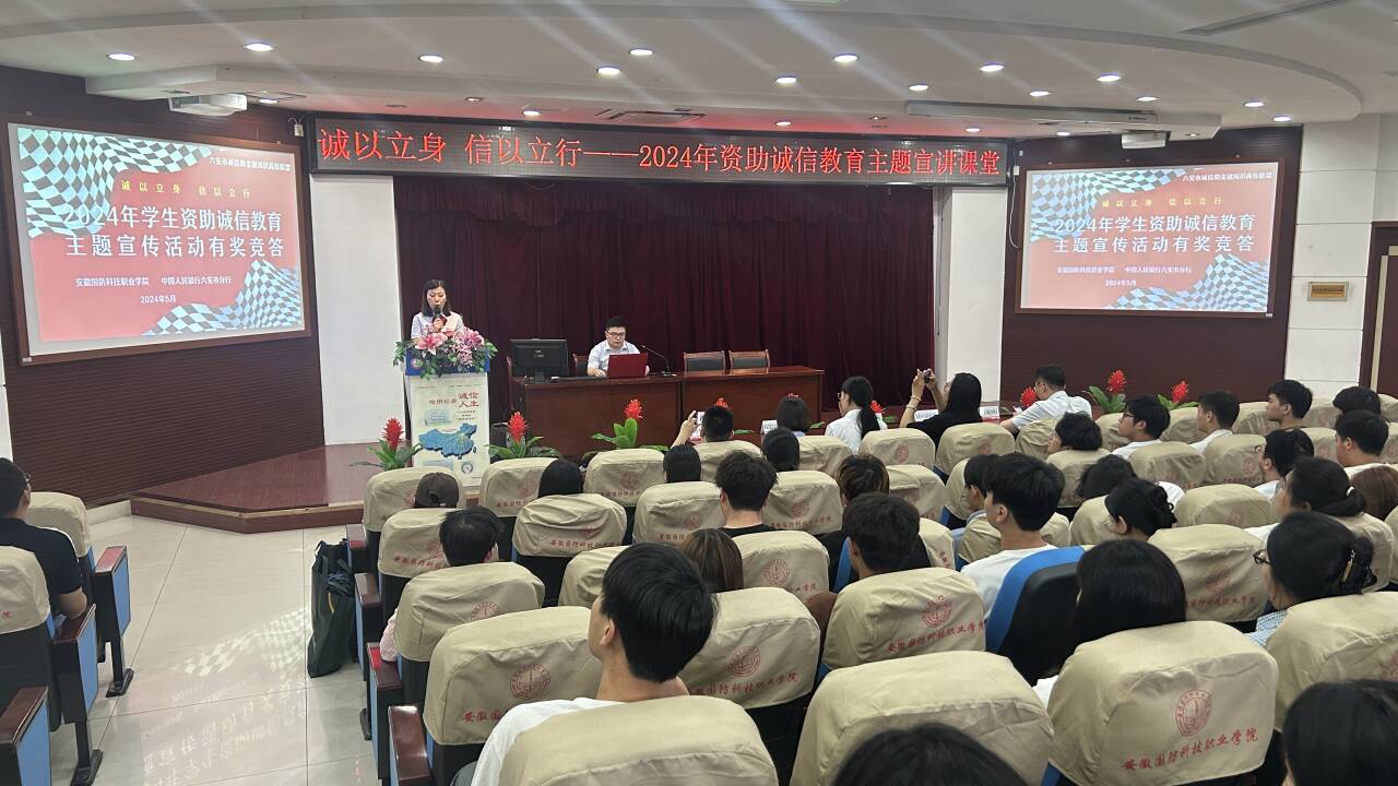 本次宣讲课堂由学生处学生资助管理中心和中国人民银行六安市分行联合牵头,徽商银行六安分行主办、安徽裕安盛平村镇银行、中国农业发展银行六安市分行协办。本次讲座是beat365学生资助诚信教育主题系列活动的一项重要内容,通过征信知识宣传视频播放、有奖知识竞答等多个环节,寓教于乐,给在场学生留下了深刻印象。讲座不仅丰富了大学生的征信知识,切实提高了同学们的征信和法律意识,引导学生树立求真务实、言行一致的诚信形象,将诚信意识内化于心,外化于行,也进一步推动了beat365校园诚信体系建设。