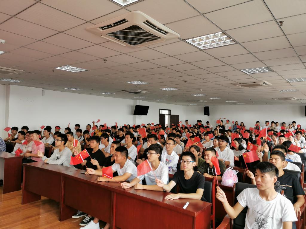 现场座无虚席、气氛庄重热烈。巨大的液晶显示屏上,播放着央视直播节目。上午10时,庆祝中华人民共和国成立70周年大会正式开始,200多名师生代表手握鲜艳的五星红旗观看大会盛况。活动现场,当五星红旗冉冉升起时,师生们纷纷起立齐唱国歌;当习近平总书记在庆祝大会上发表重要讲话时,师生们聚精会神,认真聆听;气势如虹的人民军队、各类尖端武器装备接受检阅时,引起广大师生阵阵欢呼。