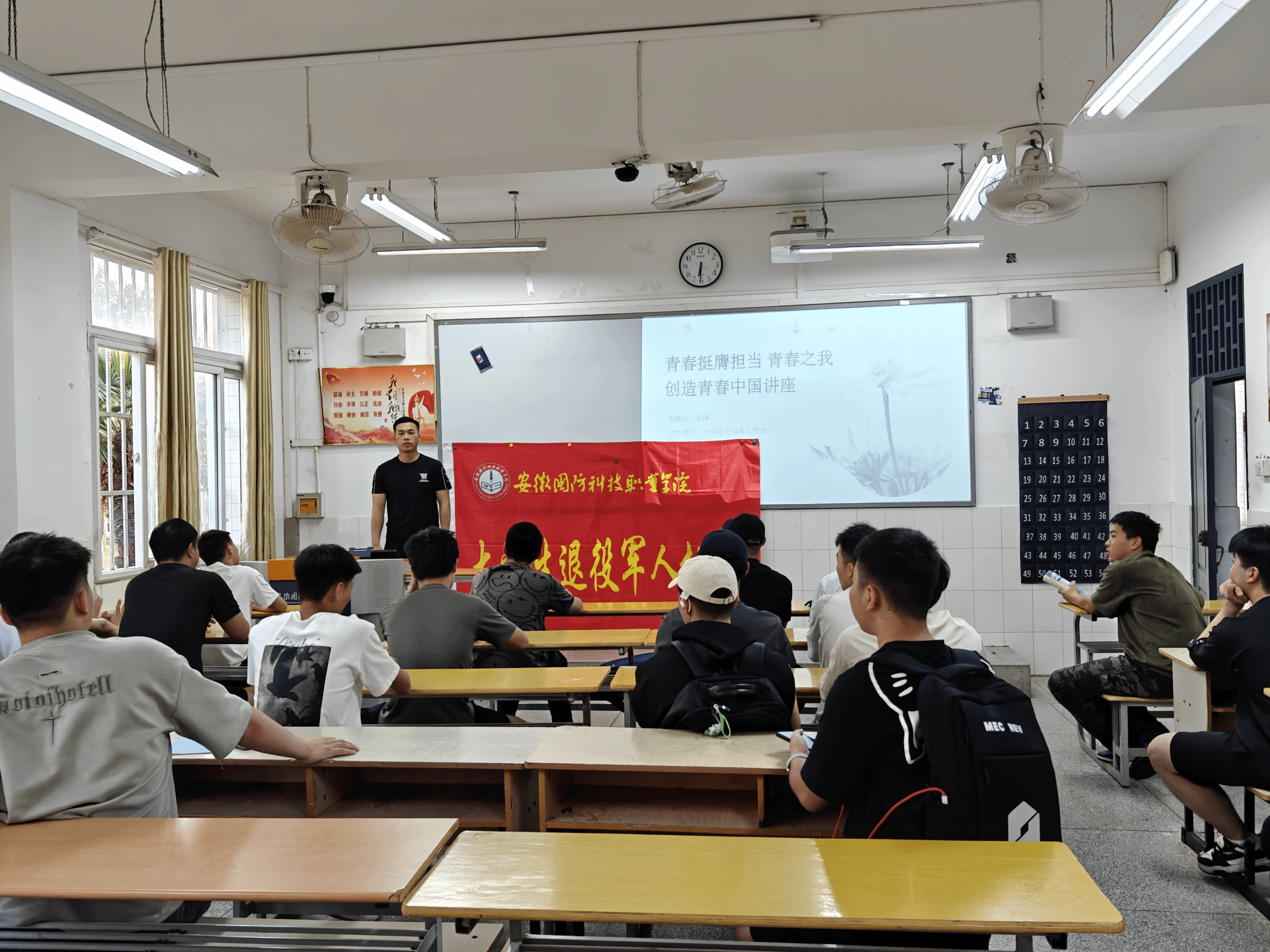 张泽在团课中指出,青春,是人生最美好的年华,是一段充满梦想、激情与活力的旅程。在这段旅途中,我们不仅要追求自我价值的实现,更要肩负起社会的责任,展现出青春的担当。要学会关心他人,关注社会热点,积极参与志愿服务,用自己的行动去影响和改变世界。作为大学生退役军人协会的成员,我们要发扬“退役不褪色 退伍不退志”的优良传统,在校园内积极开展征兵宣传动员,发挥示范引领作用,不断提升社团影响力,不负青春,不负韶华,用自己的实际行动为强国建设添砖加瓦。