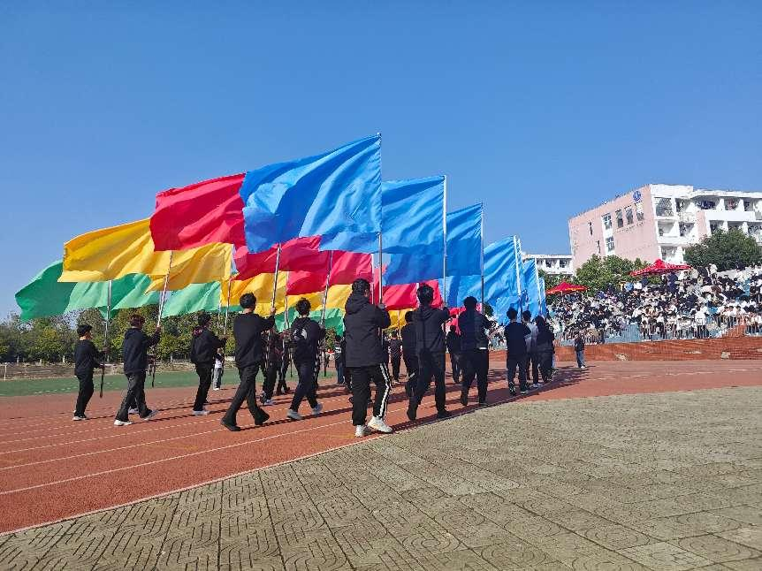 本网讯(学生通讯员 徐玉轩) 11月6日下午,在校第20届运动会开幕式上,由军魂团成员组成的彩旗方阵手举彩旗,步履轻快,气宇轩昂、意气风发,饱满的热情透露出无比的自信,坚定的步伐彰显出退役军人的自豪,笔直的身姿展现出爱国青年的气势。他们用团结书写辉煌,用青春放飞梦想,他们用实际行动充分展现了国防学子蓬勃向上的精神风貌。