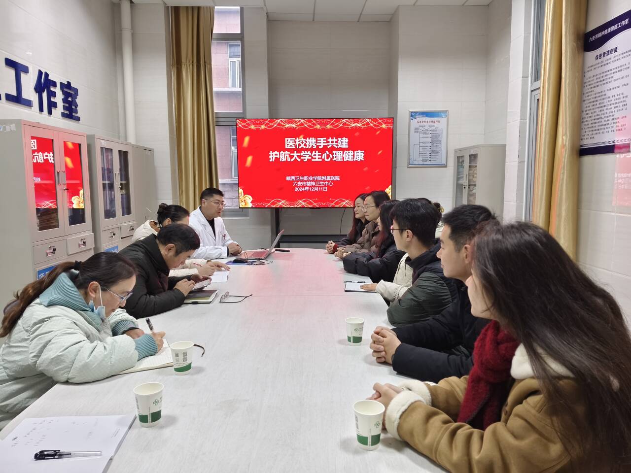 本网讯(学生处 汪亚男)为进一步提升学校心理健康教育的专业水平,打造专业的教师队伍,增强对学生异常心理问题的识别和干预能力,学生处心理健康教育中心组织11名心理健康骨干教师于12月11日走进皖西卫生职业学院附属医院(六安市第二人民医院)进行了为期半天的跟岗见习,学生处处长孙武带队。