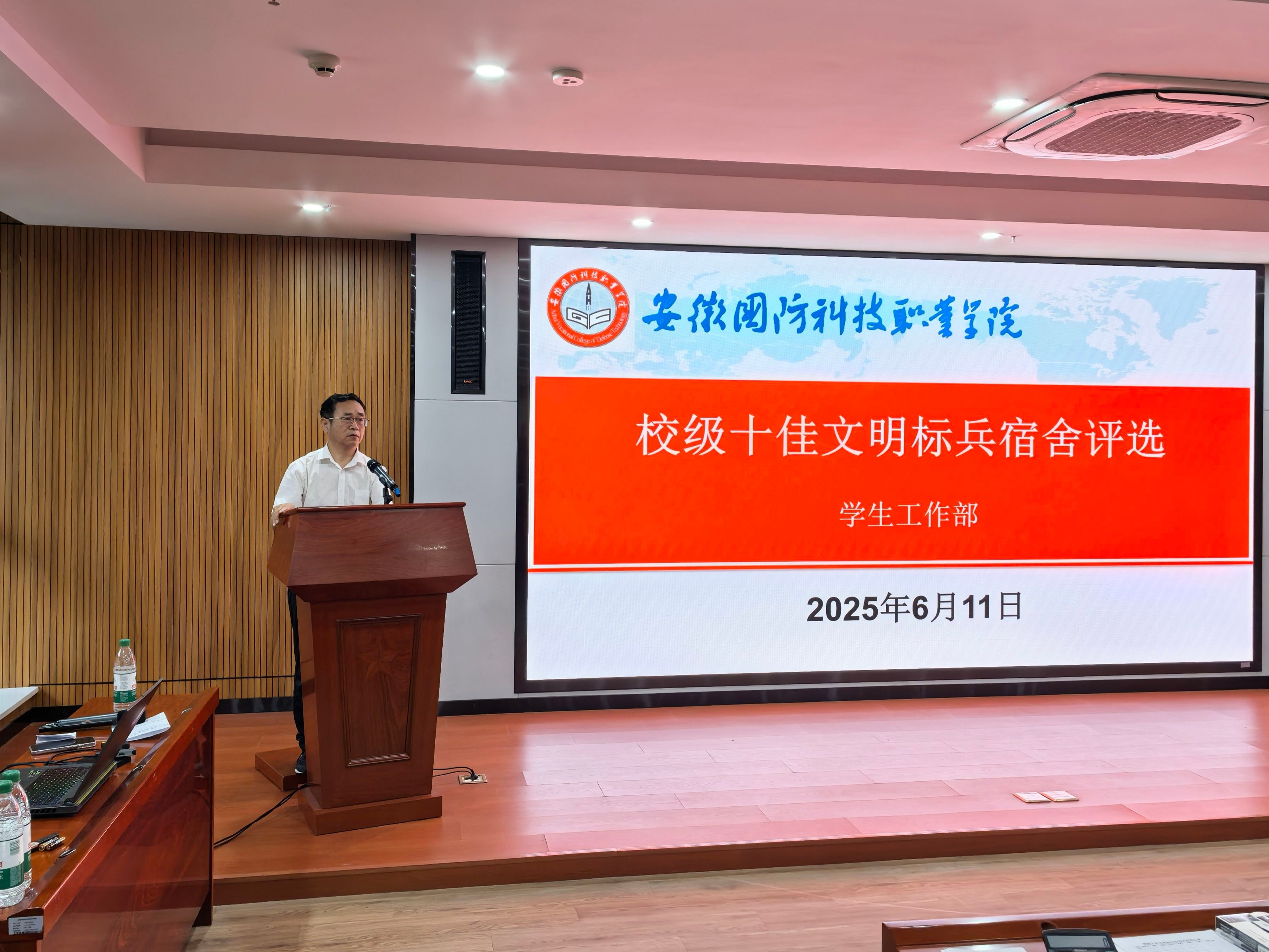 6月11日下午,学生工作部(处)在产教融合大楼第一报告厅举办2025年春季学期学生社区“十佳文明标兵宿舍”评选活动。活动邀请了学生工作部(处)、校团委、校卫生科等相关负责人担任评委。参选十佳文明标兵宿舍成员、师生代表参加了此次活动。