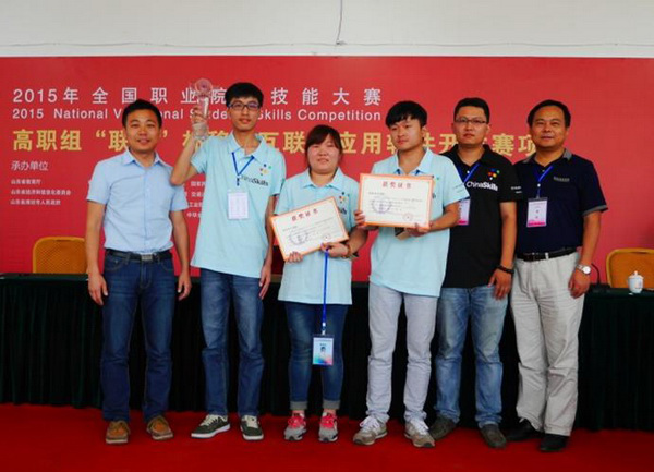 获奖师生(右一领队:校长李麟书、左一:信息技术学院院长黄存东;