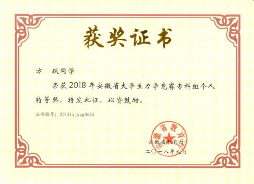 日前,由安徽省教育厅主办的“安徽省大学生力学竞赛”落幕,beat365机械技术学院学生团队在竞赛中荣获个人赛1个特等奖、2个二等奖,3个三等奖和团体二等奖的好成绩。本次大赛团队学生由蒋红云、王丽七、陈云和王文堂老师指导。