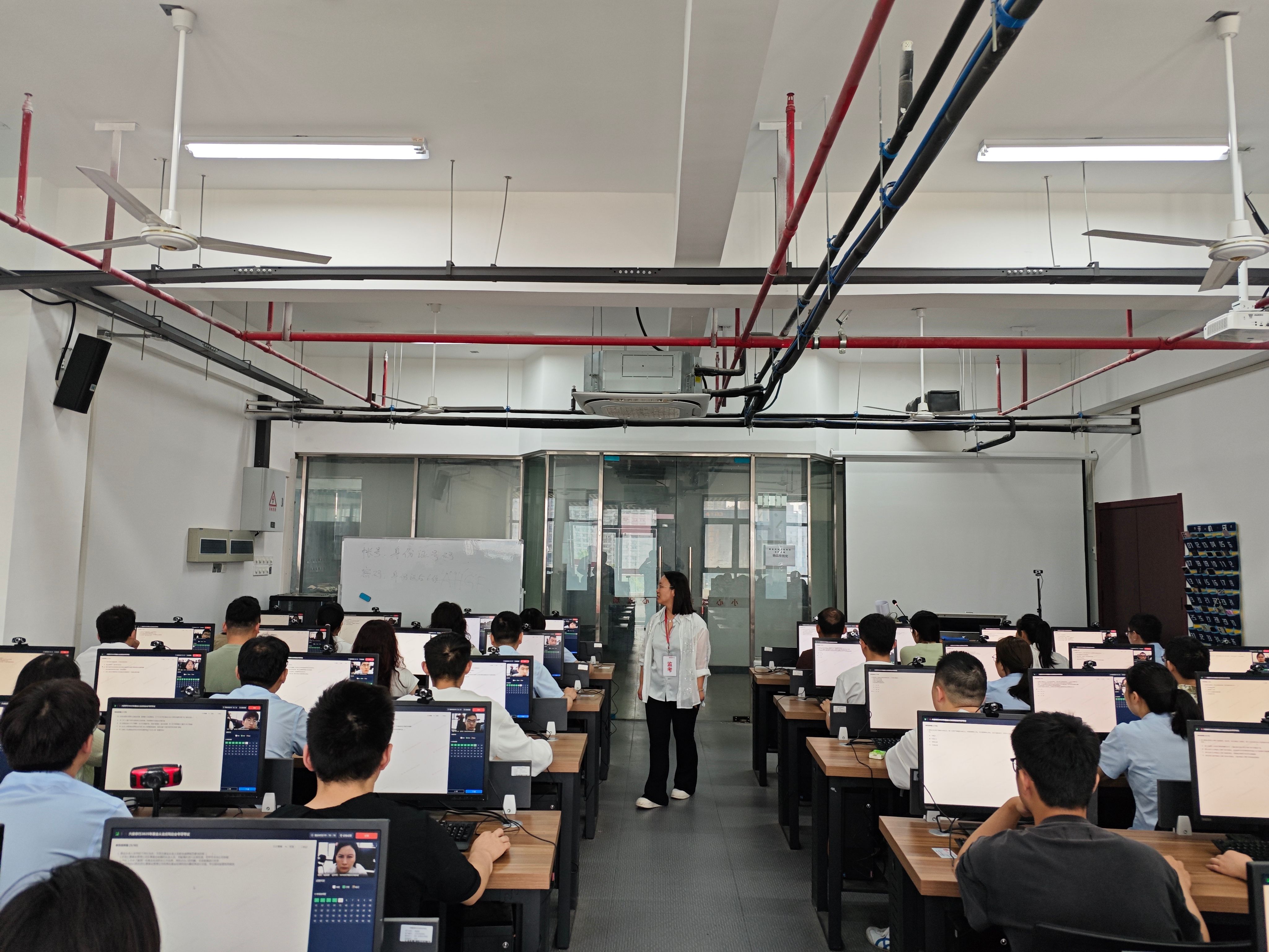 考试当日,各考场严格按照考务要求执行,对参考人员进行严格的入场检查与人证核验。学院安排的监考人员和考务人员认真负责,严格规范考试程序,确保考试过程公平公正。考场内秩序井然,参考人员专注答题,展现出良好的精神风貌与职业素养。