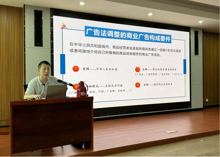 全国市场监管系统资深执法专家、六安市市场监管局执法支队副支队长储晓松担任主讲,对广告法规展开全景式解读。他阐释《广告法》核心要件,剖析真实性等三大原则;解读禁用国家象征等禁止性条款立法逻辑;详解医疗、房地产等特殊领域广告规范,分析互联网广告监管动态。储晓松指出,中国广告业规模居全球第二,从业者需平衡创新与社会责任,坚守法律底线。