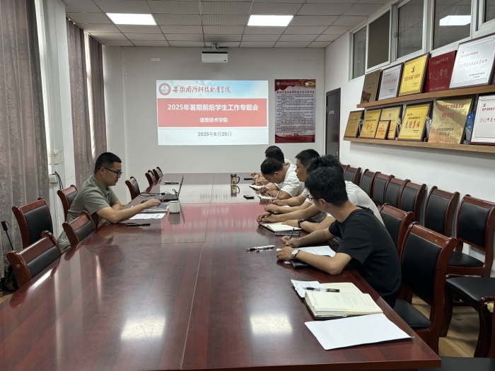 本网讯(信息技术学院 王雪)为切实筑牢暑假前后学生安全防线,保障学生文明、安全、有序度过假期,6月25日下午,信息技术学院组织召开暑期安全教育专题辅导员会议。学院党总支副书记杜洪宇主持会议,全体辅导员参会。