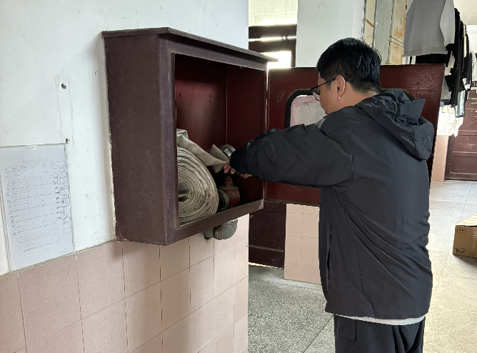 全面排查,不留安全死角。检查过程中,检查组重点核查宿舍内电路老化情况、电器使用规范程度,严查违规大功率电器使用行为。同时,逐一检查宿舍楼内消防器材的配备数量、有效期及完好状态,确保消防设施随时可用。此外,还对宿舍卫生状况、物品摆放规范度及门窗锁具安全性进行细致排查,对发现的隐患当场记录、明确整改要求,督促学生立即落实整改。