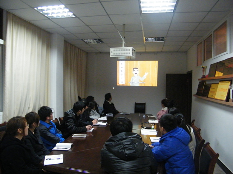 (信息工程系团总支书记张伟业与团总支、学生会主要学生干部一起观看动漫片《号角》)