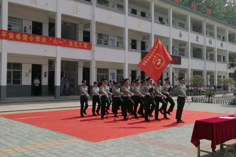 文艺表演于上午九点正式开始,在平安小学师生们的期盼中,我院大学生志愿者精心准备的节目轮番上场。首先由学院国旗护卫队进行队列表演,他们威严的军姿,整齐的步伐,虎虎生威的气势,一上场就赢得小朋友们的阵阵欢呼;大学生艺术团同学表演的吉他弹唱《童年》、歌舞表演《国家》,信息系团总支同学表演的舞蹈《我们的名字叫青春》等节目也博得经久不息的掌声;国旗护卫队表演的《擒敌拳》更是将演出气氛推向了高潮。希望小学的小朋友也拿出了《青春修炼手册》、《嗨,加油》等节目。精彩的表演还吸引了众多学生家长及村民前来观看。文艺表演前,希望小学还组织了新入队少先队员宣誓、发放慰问品、为优秀少先队员颁奖等活动。