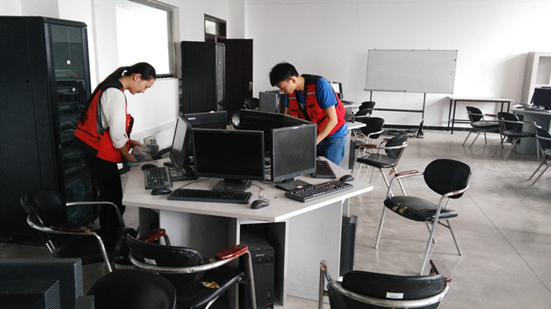 9月4日上午,我系20名同学在新综合楼展开义务清扫活动,本次活动以“我的机房我打扫”为主题,两人为一组分工对每个机房进行清扫。