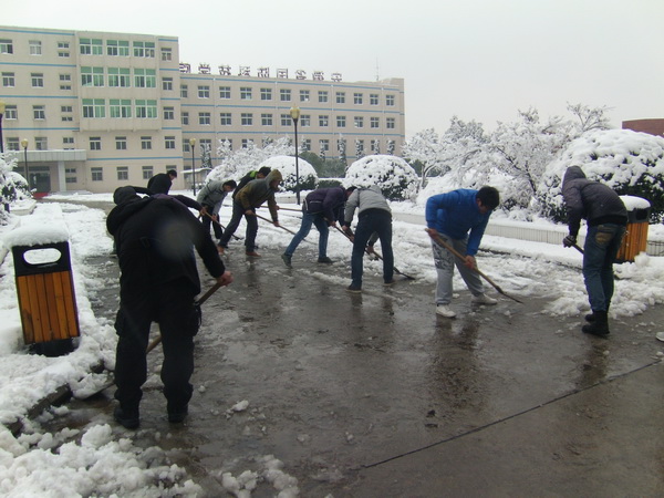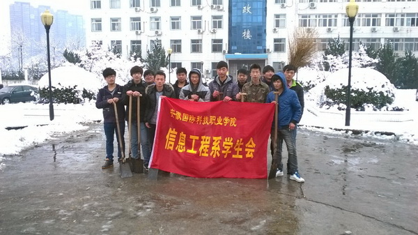 2月17日夜间的一场大雪让校园瞬时变成了冰雪王国,整个琼楼玉宇,甚是美丽。但美丽雪景也为全院师生的出行带来不便,为给全体师生一条通畅安全的上课道路,信息工程系团总支学生会自发组织学生,分别在上午9点和中午12点间开展了清扫积雪活动,为校园出行安全贡献微薄力量。同学们利用雪铲、铁锨、扫把等工具,清扫行政楼,各教学楼之间的通道。在大家的共同努力下,校园的路面积雪很快被打扫干净,保障了师生的行走畅通。参与扫雪的同学们表示:铲雪的过程虽然累,但方便了大家,心里感到很开心!