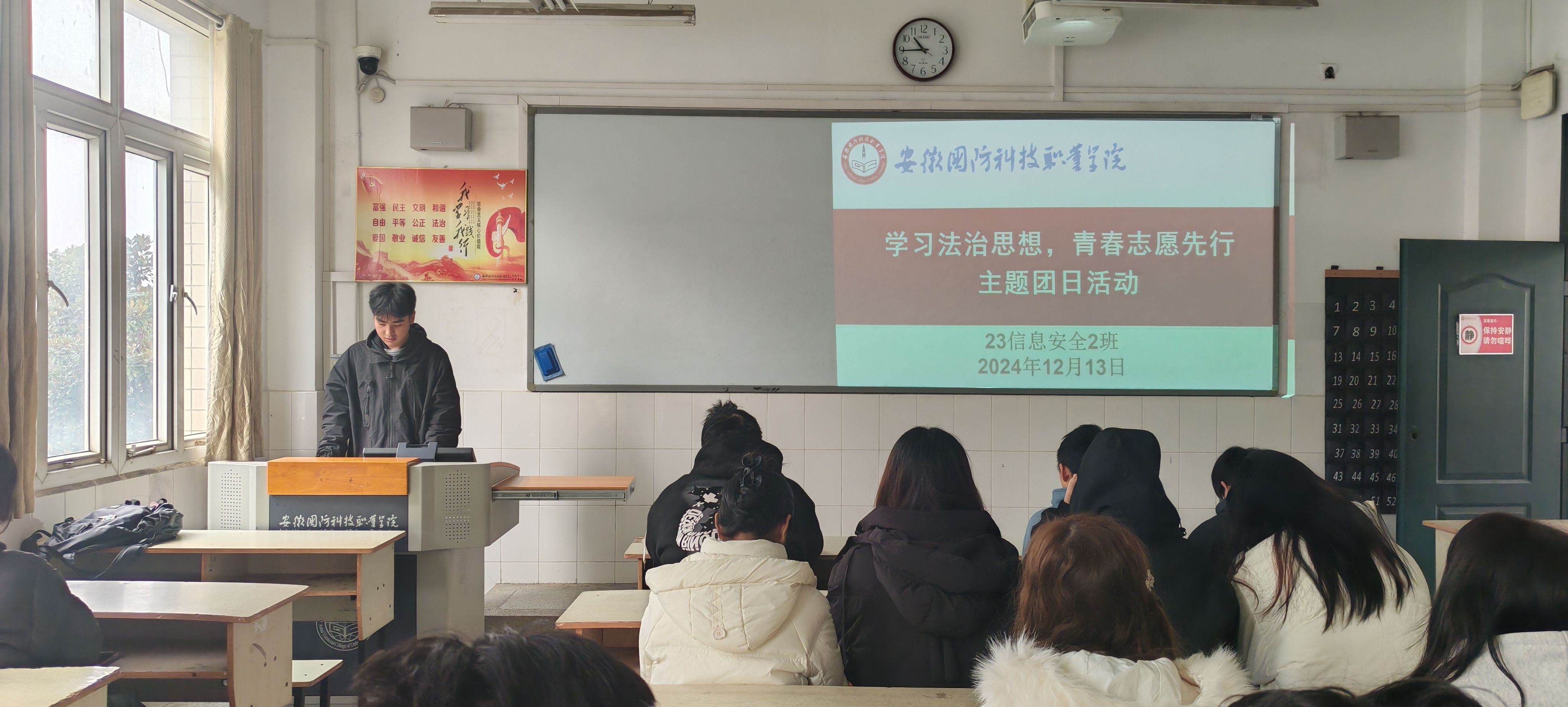 本网讯(学生通讯员 何家彬)为深入学习贯彻习近平总书记考察安徽重要讲话精神,进一步落实共青团改革方案,实现团干部常态化、制度化直接联系、服务、引导青年,12月13日上午,信息技术学院团总支孙颖凯老师在二教202教室为联系团支部23信息安全2班团支部全体学生上团课。