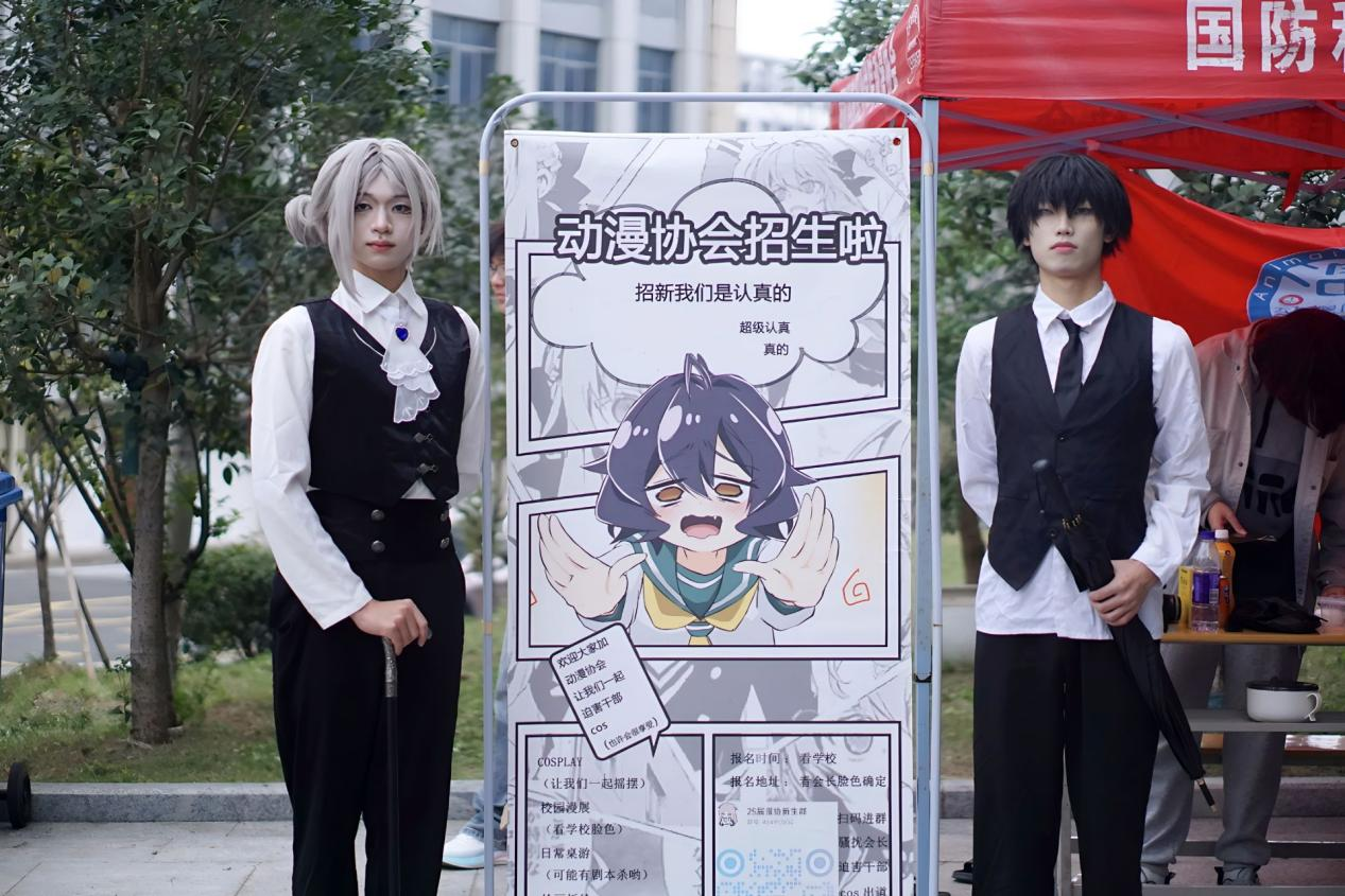活动现场,协会干部们提前精心布置场地,以饱满的热情迎接每一位咨询者。为生动展现动漫文化的独特魅力,协会成员精心筹备了Cosplay现场表演。他们身着精美的动漫角色服饰,高度还原角色形象,凭借生动的演绎吸引了大量同学驻足观看。新成员们的加入,为协会注入了新鲜活力,更为社团后续的活动策划与文化创作提供了坚实的智力支持与创意源泉。