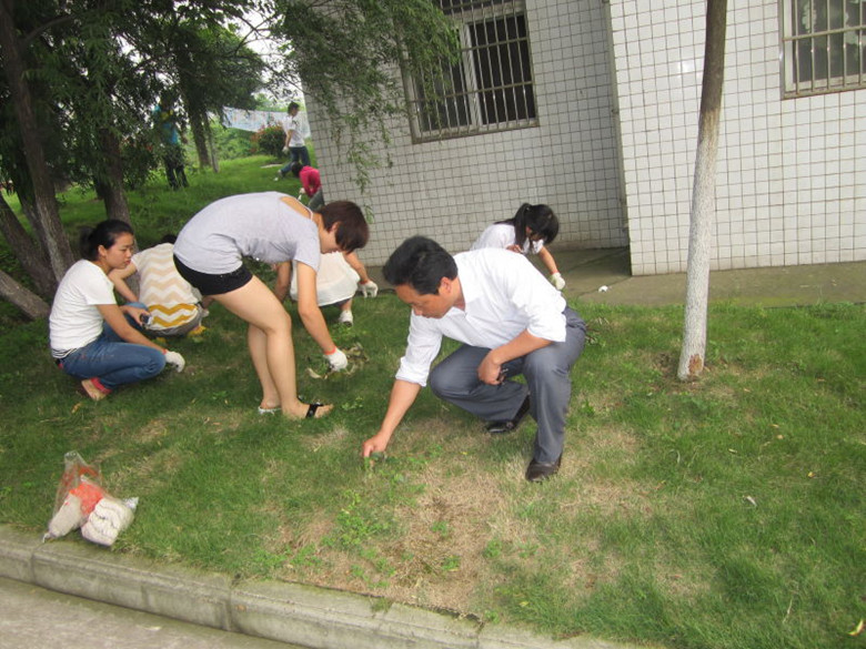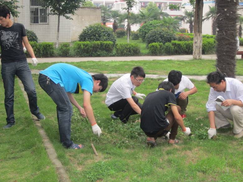 为了积极配合学院开展“文明校园建设”活动,营造优美整洁、文明有序的校园环境,信息工程系师生于2012年5月30日下午开展了一场校园美化——除草公益劳动。