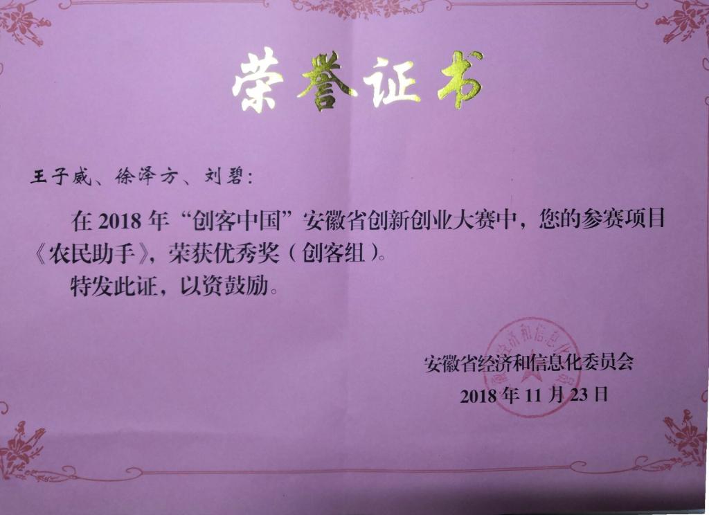 安徽省于6月启动2018年“创客中国”创新创业大赛,吸引了来自全省制造业、文化业、互联网业、科学技术业等多种行业的多个项目参加比赛,beat365实训中心推荐参赛项目《农民助手》(团队成员:信息技术学院17级移动互联班王子威、刘碧、徐泽方,指导老师:陈晨、李晨诚)经层层筛选,名列省赛创客组排名前20,荣获优秀奖。