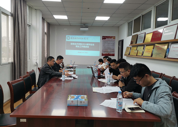 (本网讯 信息技术学院)4月10日下午,信息技术学院在知行楼304会议室召开2024届毕业生就业工作推进会议。信息技术学院党总支书记王胜、副书记杜洪宇出席会议,邀请了2024届毕业班专、兼职辅导员参加会议,共同探讨毕业生就业工作的相关问题,会议由就业专项辅导员韦志魁主持。