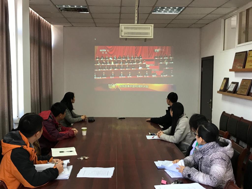 12月18日,我们伟大祖国迎来了改革开放40周年的纪念日。上午10时,庆祝改革开放40周年大会在人民大会堂隆重举行。行政楼304会议室内,信息技术学院教职工们怀着无比激动的心情观看了中央庆祝改革开放40周年大会直播,认真学习领会习近平总书记的重要讲话精神。