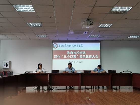 5月20日下午,信息技术学院在秉心楼902会议室召开了深化“三个以案”警示教育大会,会议由学院党总支副书记杨庆颖主持,学院全体党员参加了会议。