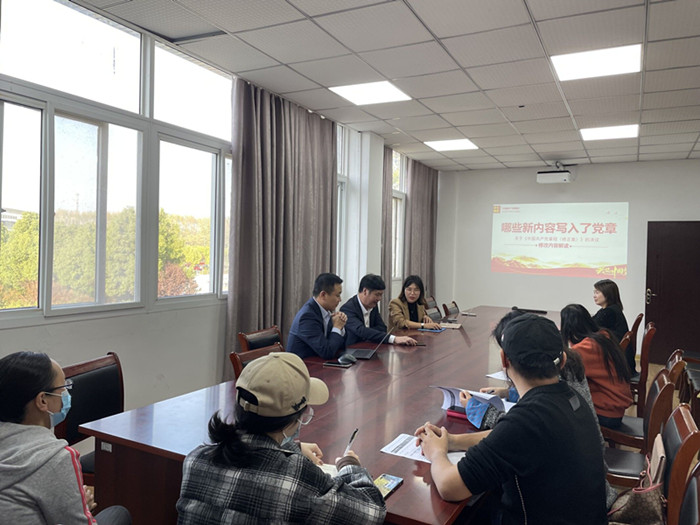 会上,党支部书记朱小娟带领大家学习了题为《哪些新内容写入了党章》——关于《中国共产党章程(修正案)》的决议修改内容解读的专题学习。朱小娟从党章发展的历史进程、二十大对党章作出了哪些修改等两个方面详细介绍了党章形成与发展的基本历程,详细解读了党的二十大修改党章遵循的主要原则和修改的主要内容。同时,她强调要把学习党章作为学习贯彻落实党的二十大精神的重要组成部分,把学习党章同学习二十大报告紧密结合起来,切实增强“四个意识”、坚定“四个自信”、做到“两个维护”,更加自觉地学习党章、遵守党章、贯彻党章、维护党章。