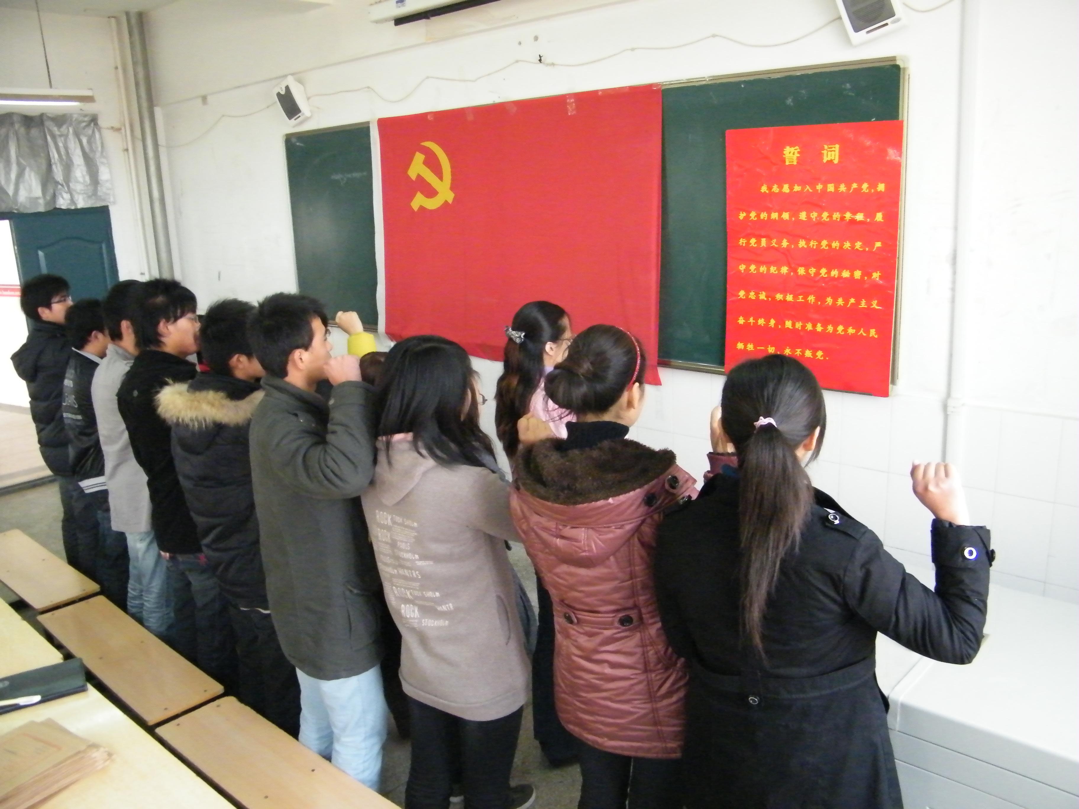 信息工程系学生党支部于2009年11月25日举行预备党员宣誓大会,大会由支部书记王文堂同志主持,组织委员刘严同志领读《入党誓词》,08级的入党积极分子列席了本次大会。