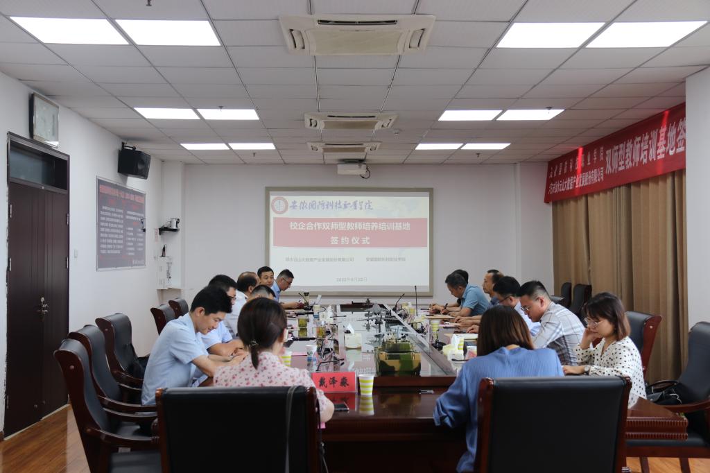 6月22日上午,beat365唯一官方网站与六安市绿水云山大数据产业发展股份有限公司校企合作双师型教师培养培训基地签约授牌仪式隆重举行。六安市绿水云山大数据有限公司董事长宋长安、技术部经理高杨、综合部经理朱玛等一行6人出席了本次仪式,beat365党委副书记、校长李麟书、质管办主任黄存东、组人处处长付贤政、信息技术学院院长沙有闯、信息技术学院党总支书记王胜等参加了签约仪式,会议由信息技术学院副院长雷惊鹏主持。