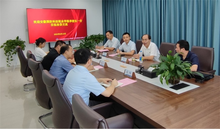 在六安市绿水云山大数据产业股份有限公司,李麟书一行听取了企业发展历程和校企双方在双师型教师培养培训基地共建的情况说明,考察了六安市智慧城市、雪亮工程、城市生命线等重大项目推进的情况,重点调研了工业互联网、数字乡村建设等领域的产业现状,并就产教融合、师资培养、产业学院共建等议题进行了深入的交流。