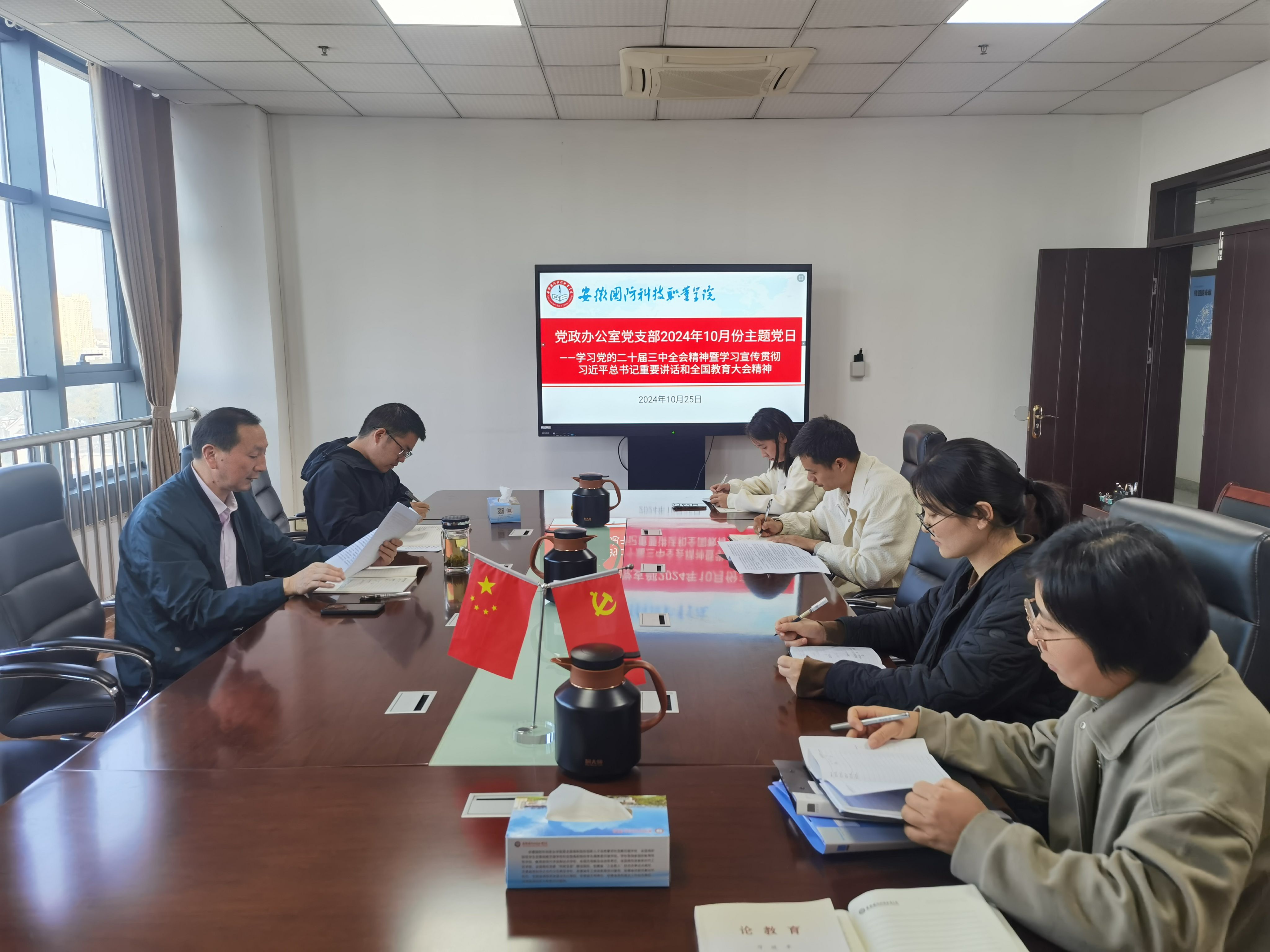 为了认真学习好、宣传好、贯彻好习近平总书记重要讲话和全国教育大会精神,党政办党支部于2024年10月25日在党委会议室开展了主题党日,会议由党支部书记李大武主持,全体党员参加。