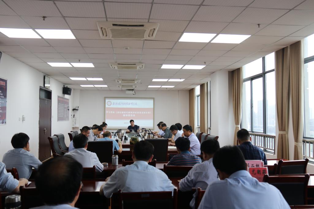 就如何贯彻落实好《总体方案》和《实施方案》,会议提出具体要求,各党组织、各部门和二级学院要持续深入开展学习,深刻学习领会习近平总书记关于教育评价的重要论述精神,充分认识《总体方案》的时代背景和重大意义,准确把握《实施方案》的改革重点任务,通过学习进一步提高政治站位,切实把思想统一到党中央决策部署上来,切实扛起改革责任;要结合学校实际,完成学校实施方案的制定工作;要持续开展负面清单的清理工作,对照《实施方案》对学校各项政策文件、规章制度再做一次全面清理,为推进学校改革打下坚实基础。