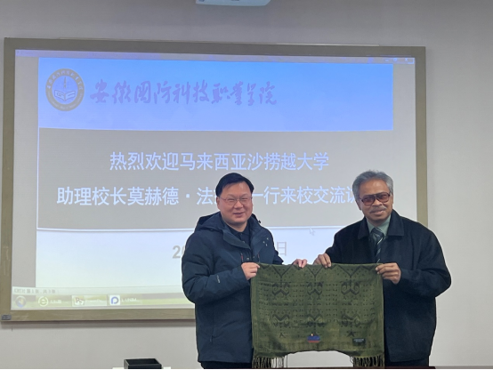 会上,双方还就学生交流、教师学历提升、中外合作办学等项目进行了深入的探讨和交流。马来西亚沙捞越大学助理校长莫赫德·法兹尔向beat365赠送了纪念品,并合影留念。
