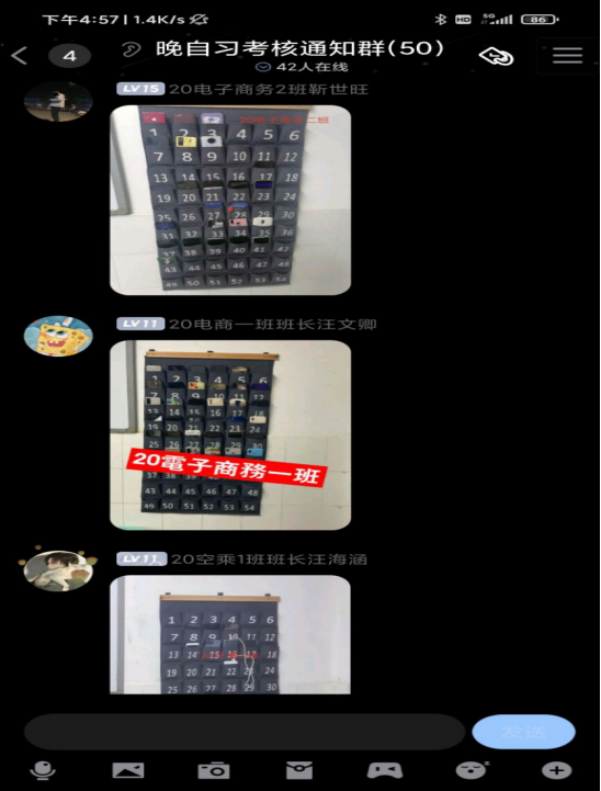 进行公告各班的一周的晚自习情况在检查晚自习期间班级出勤率较高、班级纪律都良好、手机都全部上交选出六个优秀班级。其中,20高职电子商务1班荣获一等奖,20酒店管理2班、20电子商务1班荣获二等奖,20市场营销1班、20酒店管理1班、19轨道交通2班荣获三等奖。