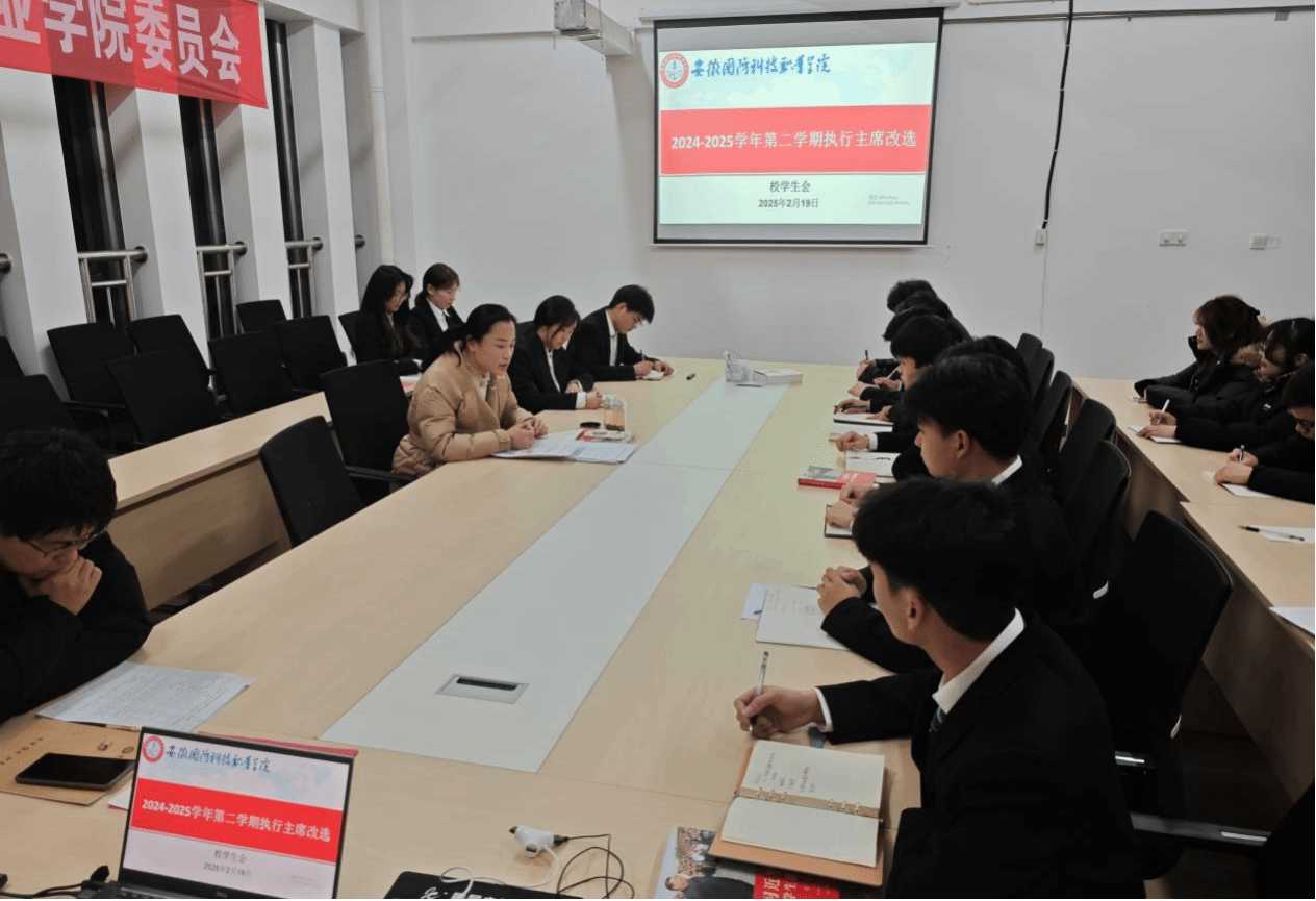 本网讯(学生通讯员 李梦想)为进一步适应新时期深化学生会改革及履行职能的需要。2月19日下午,校团委组织召开beat365唯一官方网站第五届学生会委员会全体会议,开展执行主席轮值调整工作。校团委副书记张凤,第五届学生会委员会全体委员参加了会议。