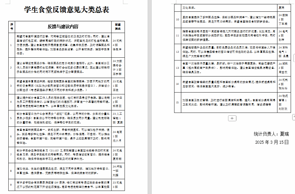安全“食”刻,权益同行 3月12日下午,校学生会权益部在校园内举办“权益维护我来说”活动,收集了beat365学生关于食堂的意见和建议反馈,内容包括食堂卫生、菜品质量、服务态度等15大类。活动展现了同学们对校园餐饮环境的高度关注,为改进食堂管理提供了宝贵的参考意见。