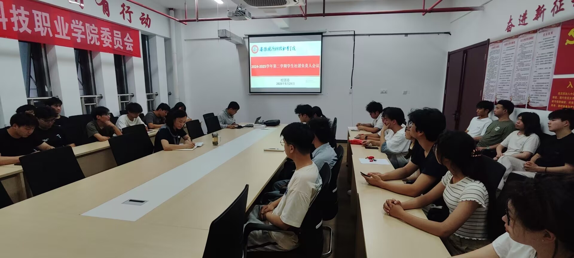 本网讯(学生通讯员 孟子圆)5月21日下午,校团委于产教融合中心A区301会议室组织召开了学生社团负责人会议。校团委副书记张凤、校团委社团管理部学生干部、各社团负责人共计40余人参加会议。会议由罗丞筠主持。