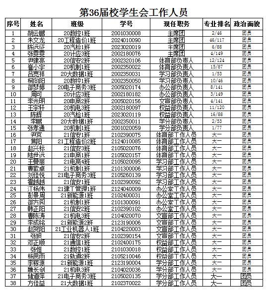 如对以上校学生会第三十六届工作人员有异议,请于公示期内(自公示日起三天)向团委反馈。