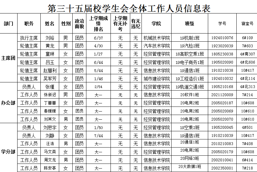 现将beat365校学生会第三十五届全体工作人员名单公示如下: