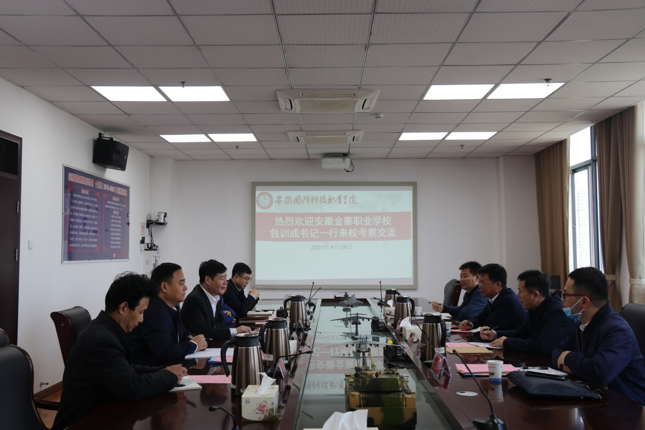本网讯 4月28日上午,安徽金寨职业学校党委书记包训成、办公室主任黄源等一行来beat365考察交流中高职一体化办学事宜,beat365党委书记余嗣元,党委委员、副校长冯伦久,党委委员、信息技术学院院长黄存东,党委委员、党政办主任李存鹏及招就办主任束传俊等热情接待了来宾,并在秉心楼11楼第一会议室举行了座谈会。