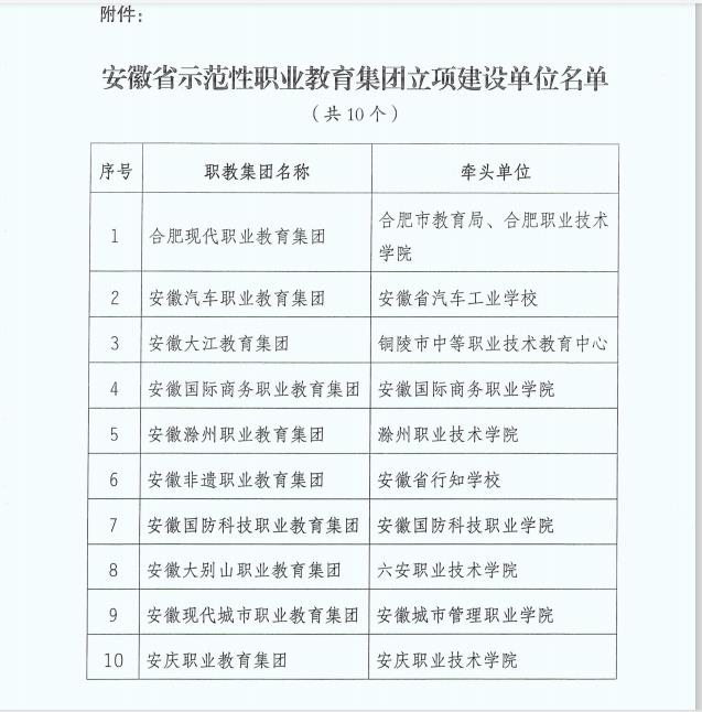 近日,安徽国防科技职业教育集团成功获批安徽省示范性职业教育集团建设项目,成为安徽省首批获得示范性职业教育集团项目立项的10家集团之一。