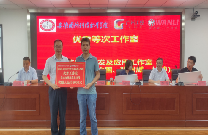 李中永宣读《关于公布2023-2024学年“万力”卓越工匠班考核结果的通知》文件,参会的校企双方领导为工匠班各工作室及11位优秀学员颁奖。