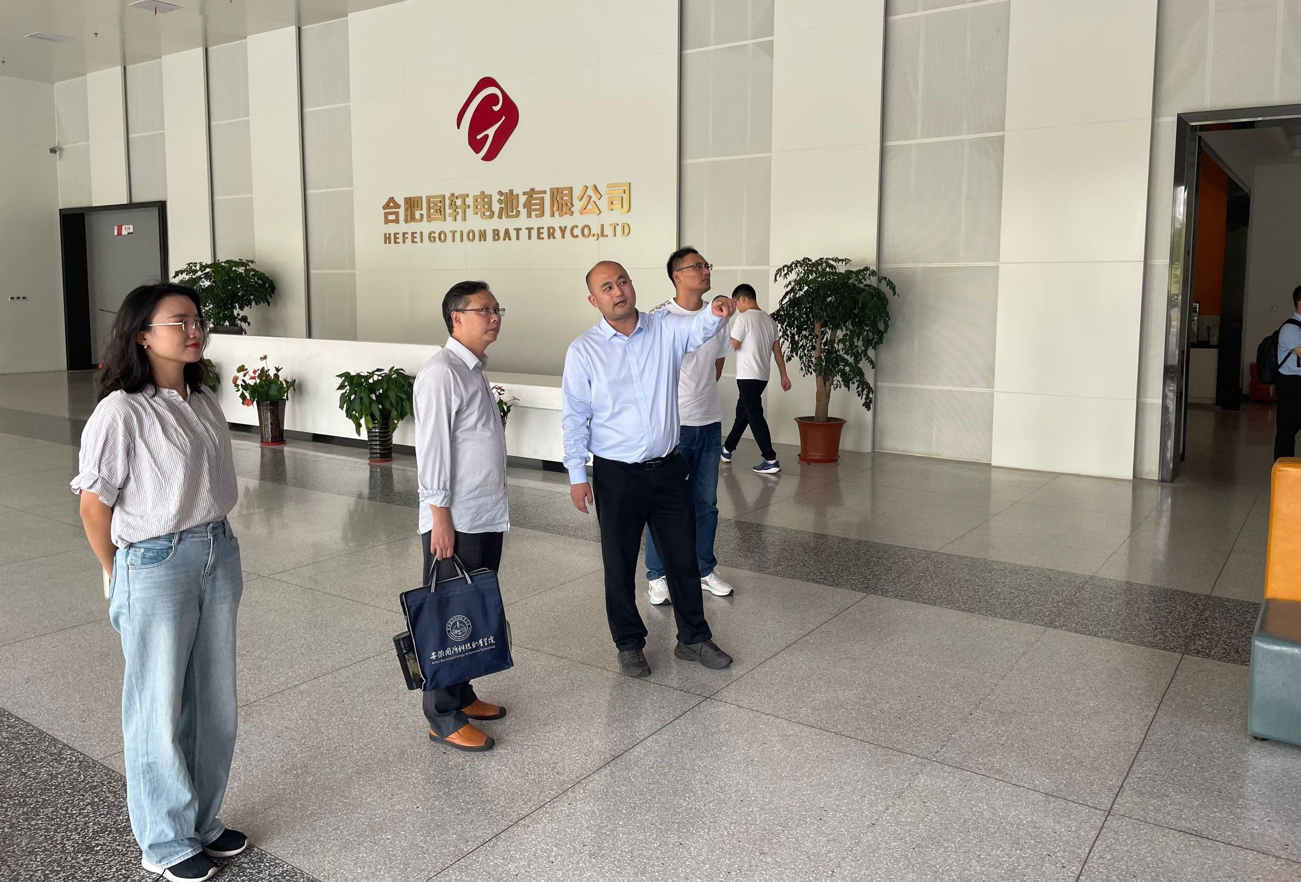 在合肥经开国轩相关负责人的陪同下,李翔一行前往国轩电池生产组装车间,深入了解电池生产的全流程工艺,观摩了公司主要产品磷酸铁锂材料及电芯、三元材料及电芯、动力电池组、电池管理系统及储能型电池组特色展品,对经开国轩的厂区规模、业务范围、生产设备、工艺流程、实习就业岗位等情况进行了深入的了解,双方表示,将尽快进一步研究和讨论校企合作具体事项,积极组建“国轩订单班”,使合作跨入实质性阶段。