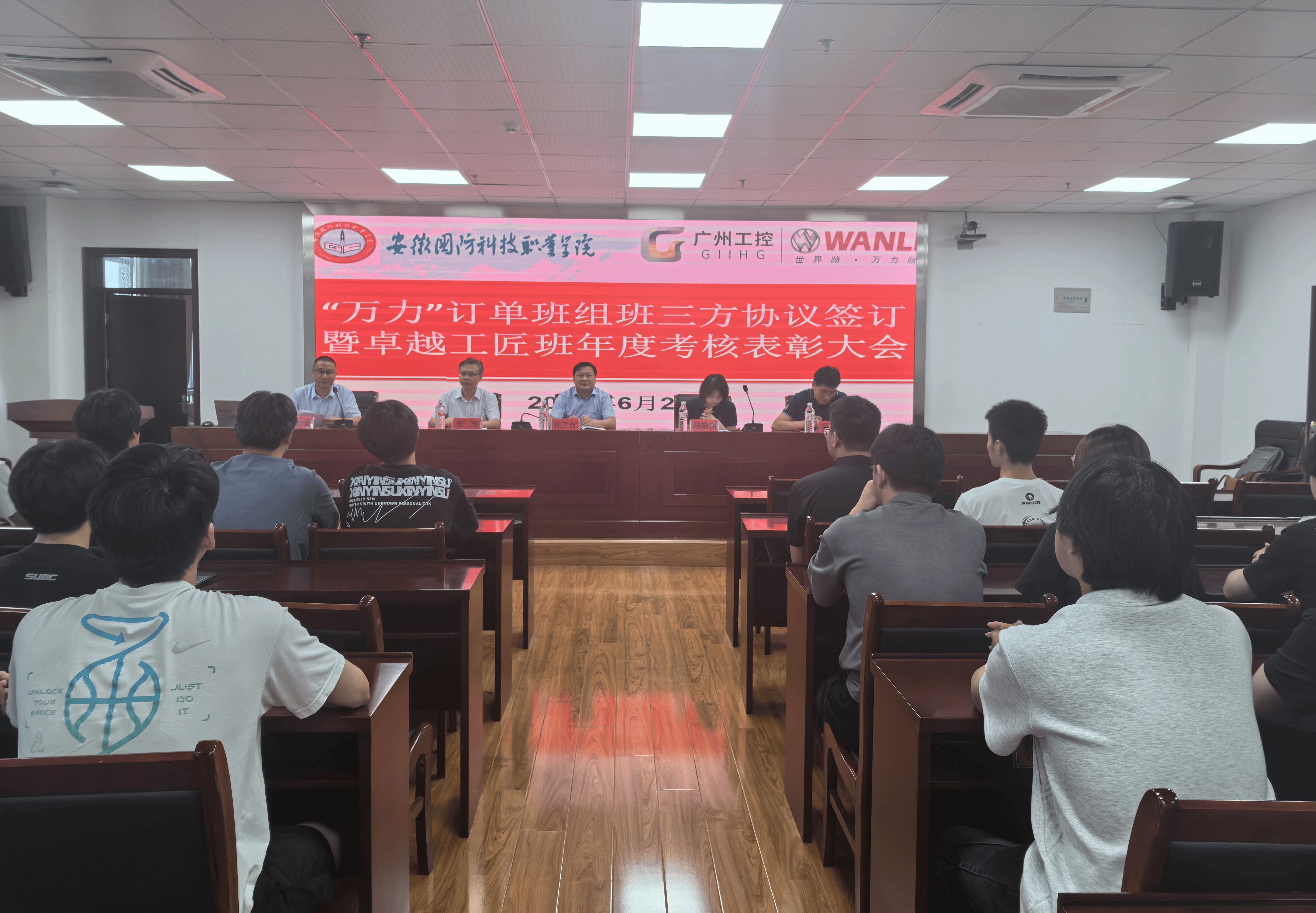 本网讯(电气技术学院 吴年祥)6月25日下午,万力卓越工匠班2024-2025学年考核表彰大会在秉心楼12楼会议室隆重举行。合肥万力轮胎有限公司人力资源部部长程婧娴、招聘主管岳立强,beat365唯一官方网站党委副书记、校长徐正红,电气技术学院院长李翔等校企双方领导以及学院全体工匠班指导老师和学员参加,会议由电气技术学院副院长江治国主持。