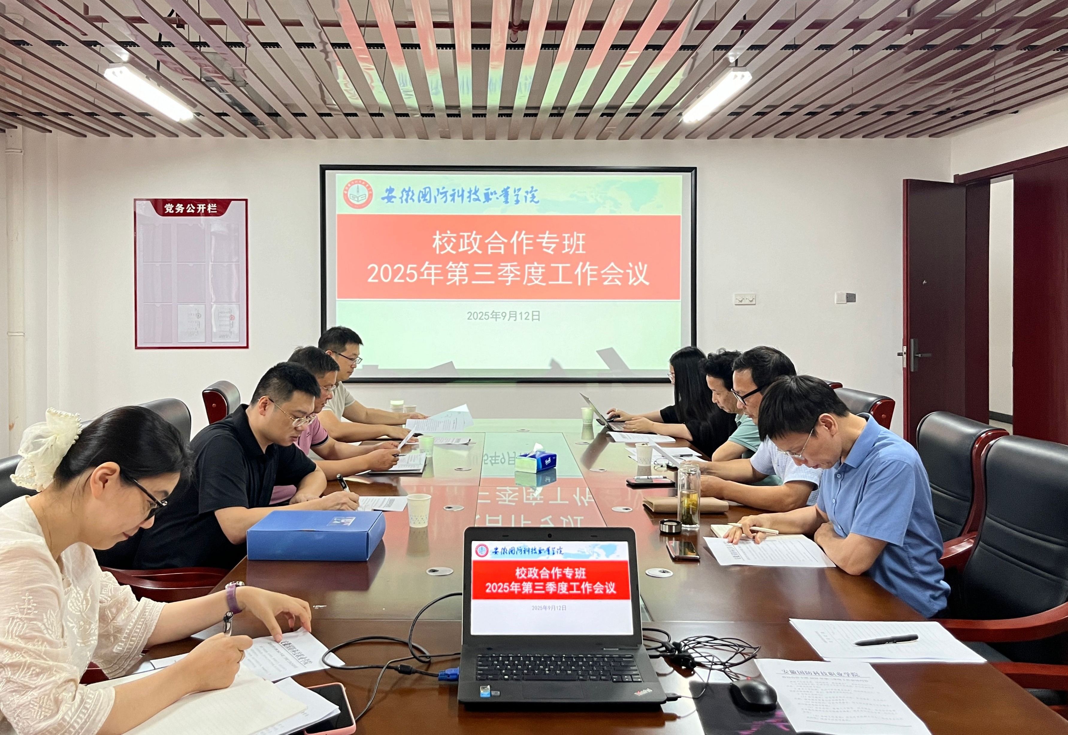 本网讯(继续教育学院 王旭)9月12日下午,beat365唯一官方网站-六安经济开发区政校合作专班2025年第三季度工作会议在校企合作办会议室召开。校企合作办主任李中永主持会议,六安市经济开发区人才就业服务中心副主任朱含超及其他专班成员参会,会议围绕“总结复盘、协同推进、聚焦重点”展开深入交流与研讨。
