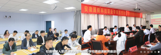 善言者必善听。学校领导班子深入思政课堂听课,专题召开思政工作座谈会,倾听师生心声。上左图为学校领导班子听课,右图为领导班子深入思政教学部召开座谈会。