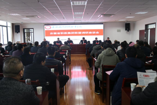 上图为安徽省职教集团联盟于2019年组团来beat365考察交流座谈会现场。