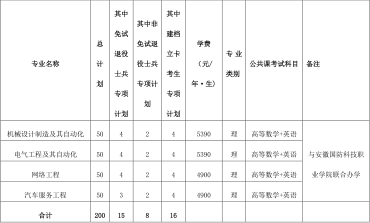 2022年皖西学院&beat365唯一官方网站联合培养专升本招生专业计划